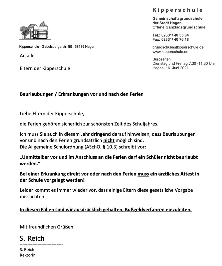 Beurlaubungen vor und nach den Ferien – kurz